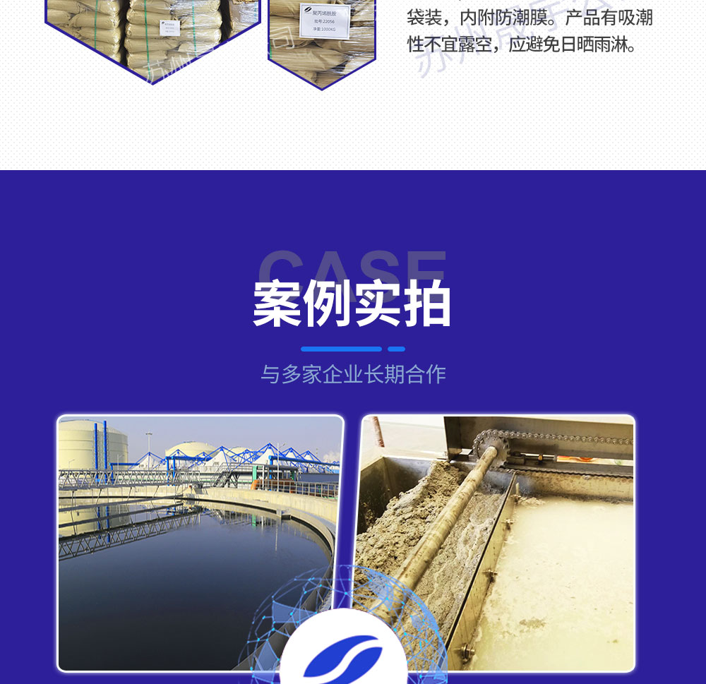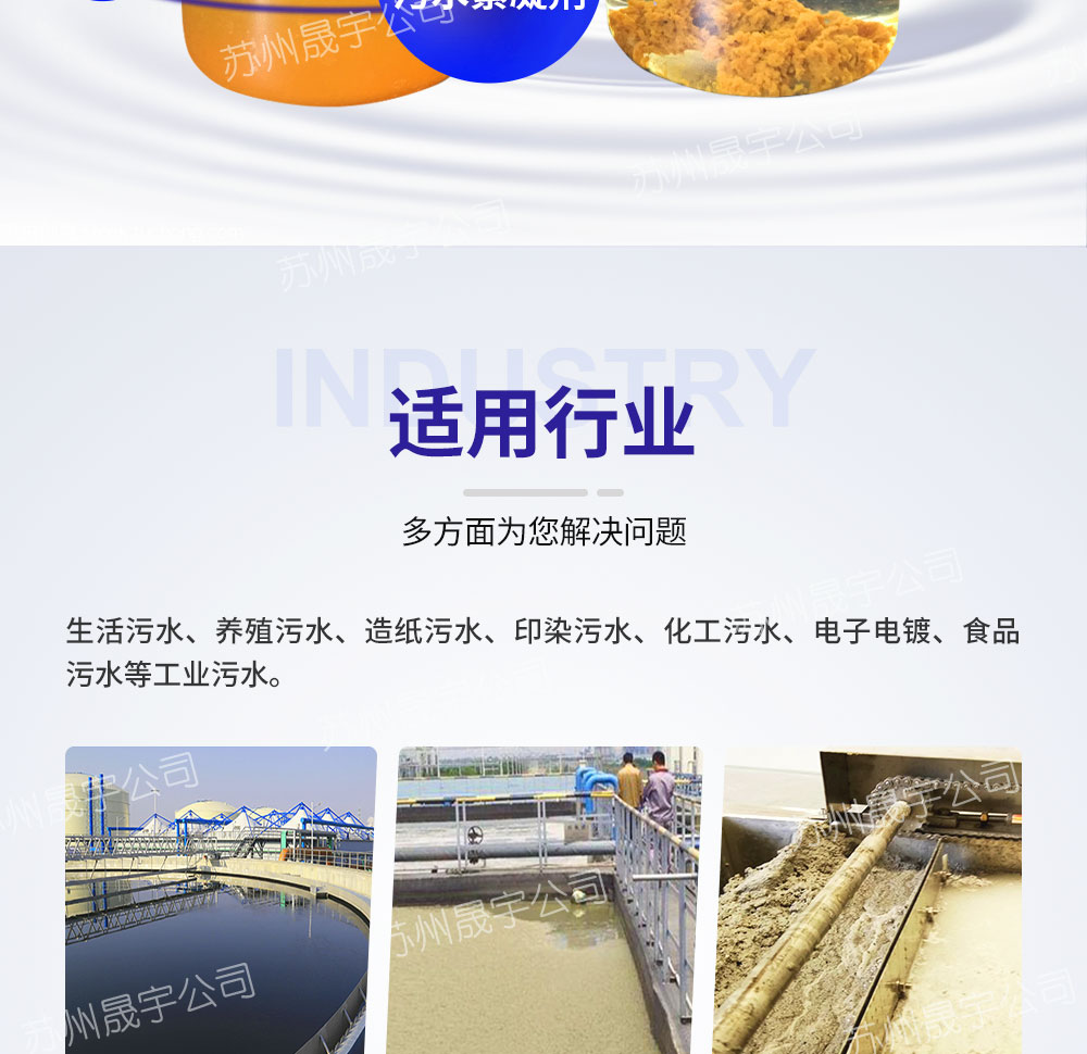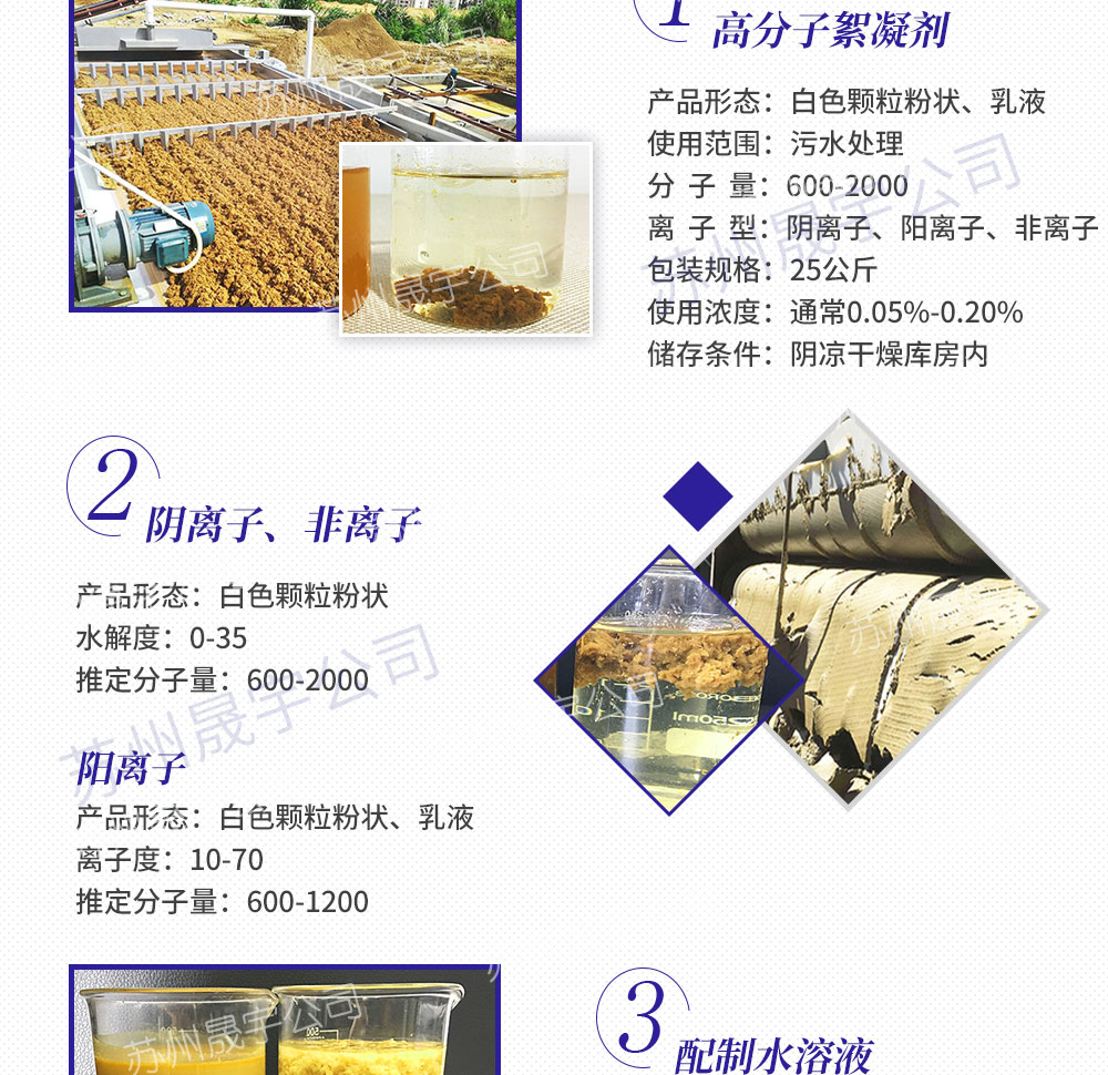 高分子絮凝剂为水溶性线状聚合物,可用作助凝剂、保留助剂、污泥脱水剂以及凝集沉降剂等。高分子絮凝剂借着电性中和及吸附架桥作用,可促使悬浊粒子快速的凝集沉降,而达到分离,澄清。